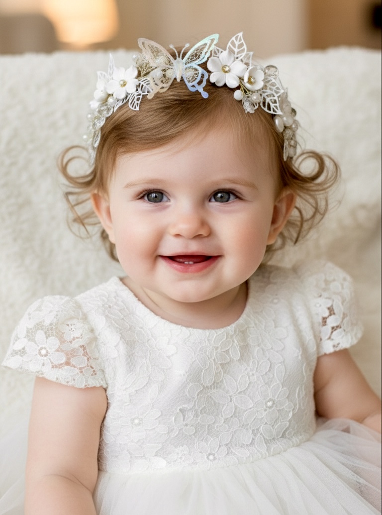 Tiara Batizado Flores e Borboleta